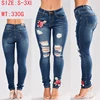 Jean Stretch à fleurs pour femmes, Pantalon déchiré en Denim, motif brodé, Rose