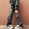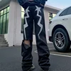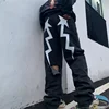 Jean en Denim pour femmes, style Hip hop, Streetwear, rétro, imprimé étoiles de foudre, Baggy, trou, Cowboy, jambes droites, nouvelle collection automne