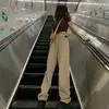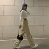 Jean kaki taille haute pour femme, pantalon en Denim, ample, à la mode, mignon, style coréen Boyfriend