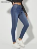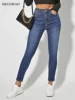 Jean Slim extensible pour femmes, pantalon en Denim classique, taille haute, Slim, hanche relevée, mode, bleu, crayon, cinq poches