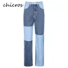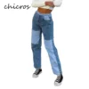 Chicros – jean à jambe droite pour femme, rétro, bleu foncé et bleu clair