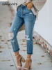 Chicros – jean à jambes droites pour femme, jean de caractère décontracté avec trous déchirés, automne et hiver