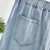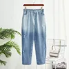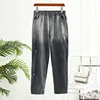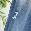 Pantalon en Denim bleu pour femmes, grande taille, taille haute, trouée, taille élastique, nouvelle collection printemps automne 2021