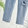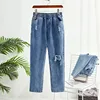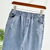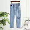 Jean déchiré à jambes droites pour femme, pantalon ample, taille haute, décontracté, lavé, mode maman, grande taille, automne hiver
