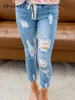 Chicros – jean déchiré taille haute pour femme, pantalon en Denim, élastique, collection printemps et automne