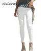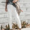 Chicros – jean Stretch plissé à taille élastique pour femme, collant Slim, couleur unie, blanc, taille haute