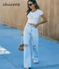 Chicros – jean déchiré ample taille haute à franges pour femme, pantalon évasé ample, assorti, Style printemps et automne