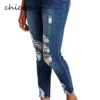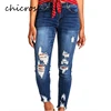 Chicros – jean déchiré taille haute pour femme, vêtement extensible, décontracté, assorti, collection printemps et automne