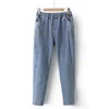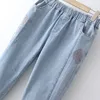 Pantalon à jambe droite pour femme, jean taille haute élastique, Slim, ample, mode, broderie maman, grande taille, automne hiver
