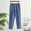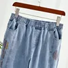 Jean taille haute en Denim pour femmes, Streetwear, pantalon à jambes droites, brodé, ample, délavé, maman, nouvelle collection 2021