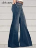 Femme Taille Haute Mince Rétro Large jambe Jeans Printemps et Automne Nouveau Tout match taille Haute à jambes Larges Jeans Femmes