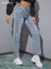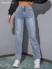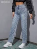 Jean rétro droit bleu délavé pour femmes, pantalon en Denim à jambes larges, cinq poches, ample, décontracté