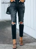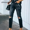 Chicros – jean déchiré élastique taille haute avec petits pieds pour femme, pantalon court assorti, grande taille, nouvelle collection automne et hiver