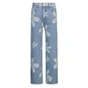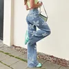 Jean bleu Style rétro des années 90 pour femmes, ample, Streetwear, imprimé floral, taille haute, droit, jambes larges