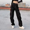 WeiYao – jean droit Style Preppy pour femme, pantalon Cargo, Baggy décontracté, taille haute, Streetwear, Denim, années 90