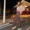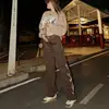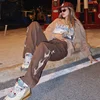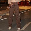 Jean marron brodé pour femme, style rétro, droit, jambes larges, style Hip Hop, pour Skateboard, Streetwear, y2k