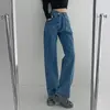 Jean taille haute bleu, pantalon en Denim Harajuku coréen sauvage décontracté pour fille, pantalon Streetwear ample, bleu