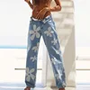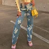 Pantalon en Denim à jambes larges pour femme, Streetwear, imprimé Floral, taille haute, poches, décontracté, ample, Baggy, mode élégante, Y2k