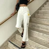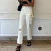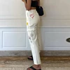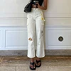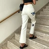 Jean droit blanc imprimé drôle pour femme, pantalon en Denim taille haute, poches Patchwork, décontracté coréen Streetwear, pantalon Cargo