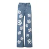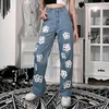 Jean en Denim pour femme, taille haute, imprimé floral, Harajuku, Streetwear, décontracté, pantalon à la mode, bleu, ample, droit, Y2K