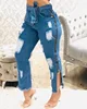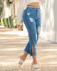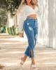 Collants pour femmes, pantalon denim, fermeture éclair, déchiré, ourlet à franges, nouvelle collection 2021