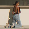 Jean déchiré à trous pour femmes, pantalon ample, Sexy, décontracté, taille haute, en Denim, à la mode