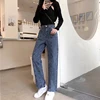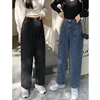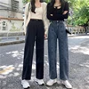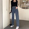 Jeans de printemps et d'automne pour femmes, Tube droit ample, jambes larges, taille haute, sensation de suspension, étudiants coréens décontractés, Look mince
