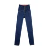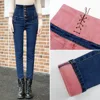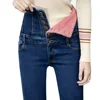 Pantalon crayon en Denim épais pour femme, taille haute, élastique, Slim, en peluche, nouvelle collection hiver 2021