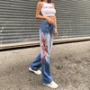 Jean ample rétro imprimé pour femme, pantalon Denim à jambes larges, esthétique Version coréenne des années 90, salopette taille basse, nouvelle collection été 2021