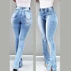 Jean bleu pour femme, taille haute, Slim, fermeture éclair, Sexy, hanches, pantalon, Denim, printemps automne