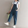 Jean délavé rétro pour femmes, combinaison en denim à jambes larges, avec boucles, poches, pantalon cargo, 2021