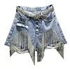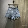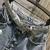 Short en Jean bleu déchiré avec strass pour femme, Slim, court, taille haute, avec chaîne, nouvelle collection été automne 2021