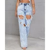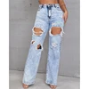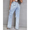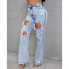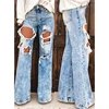 Jean déchiré et évasé pour femme, pantalon droit, taille moyenne, jambes évasées, grande taille