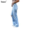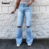 Ladguard – jean déchiré pour femme, pantalon Denim sexy, push up, taille haute, décontracté, jambe droite