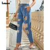 Ladguard – jean déchiré à jambes droites pour femmes, Pantalon en Denim bleu Vintage, Sexy, à la mode, 2021