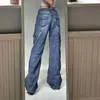 Pantalon Streetwear taille basse, Jean à jambes larges, poches, Cargo, Denim esthétique, Harajuku, maman petit ami, droit