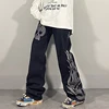 Jean délavé femme, pantalon Denim, taille haute, tendance, Tube droit, jambes larges, squelette, nouvelle collection printemps 2021