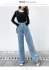 Streetwear – jean taille haute pour femme et fille, pantalon à jambes larges, en denim, pour maman