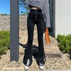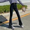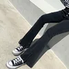 WeiYao – jean noir uni pour femme, pantalon en Denim, taille haute, décontracté, jambes larges, fendu sur le côté, survêtement Grunge des années 90, Y2K