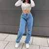 Jean délavé à jambes droites pour femme, pantalon Long, décontracté, taille haute, Streetwear, 2021