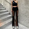 Goth Egirl – jean évasé, pantalon en Denim Y2K, taille haute, slim, Streetwear esthétique des années 2000, Harajuku, jean indien noir