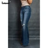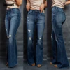 Jean Denim bleu rétro pour femmes, pantalon déchiré avec trous, Streetwear décontracté, Slim, évasé