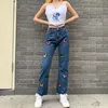 Pantalon en Denim y2k pour femmes, Streetwear, mode imprimé, Long, droit, ample, taille haute, pantalon Harajuku, surdimensionné