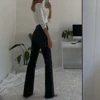 Jean rétro taille haute Y2k style Harajuku, pantalon en Denim évasé, bas de cloche coréen, noir et bleu, nouvelle collection