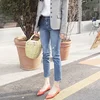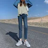 Jean en flanelle pour femme, pantalon court et droit, taille haute, style coréen, tube de fumée, élastique, nouvelle collection automne et hiver