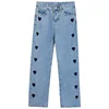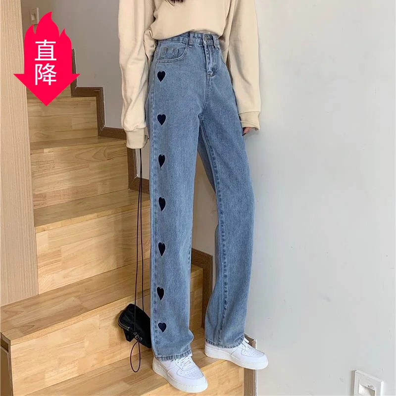 Jeans à motif d'amour pour femmes, pantalon ample à jambes droites, taille haute, slim et polyvalent, nouvelle collection printemps et été