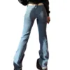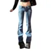 Jean coupe trompette décontracté pour femmes, pantalon en Denim taille basse de couleur unie avec poche cousue