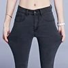Jean en denim délavé pour femme, pantalon crayon moulant, élastique, grande taille 40, bleu, gris, noir