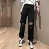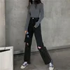 Jean droit taille haute surdimensionné Y2K, pantalon droit, noir, hip hop, skateboard