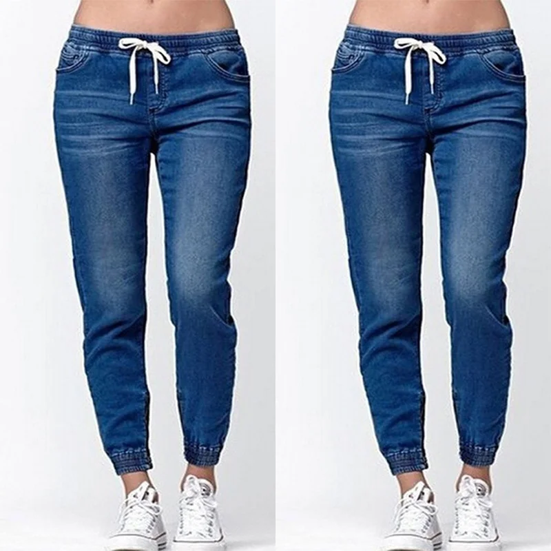 Jean uni à la mode pour femmes, taille élastique, pantalon droit crayon, pantalon en Denim, pantalon décontracté pour femmes